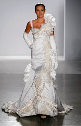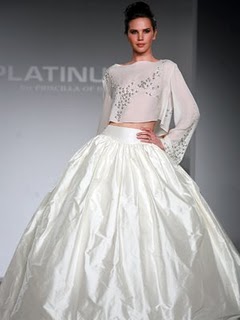 | Platinum Wedding Dress-Long Sleeve Blouse And Satin Faired Skirt |
