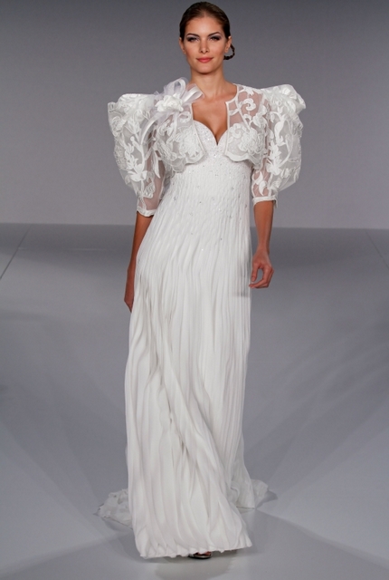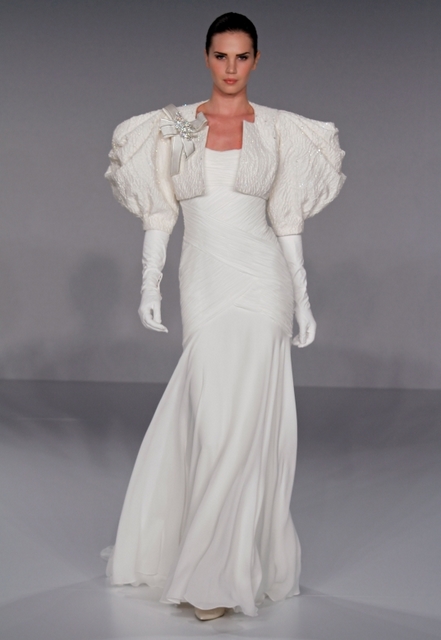 | Nice Long Buff Sleeve Platinum Wedding Dress |