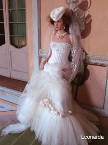 | Satin Sort Sleeve Flower Design Bridal Dress With Hat In Model |