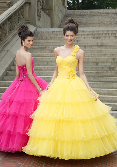 | Pink And Yellow Colors Wedding Gown For Sweet Two Girls |