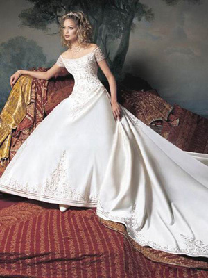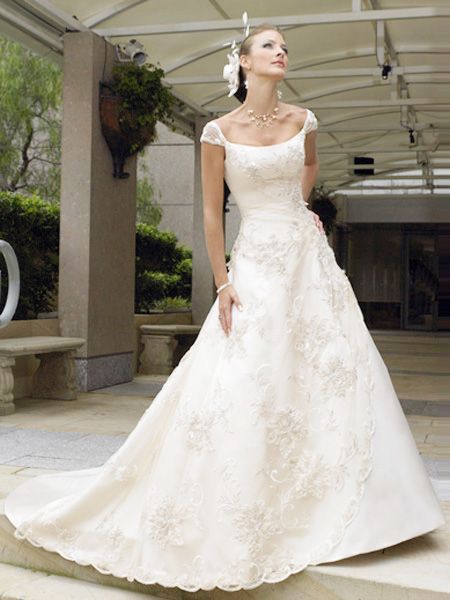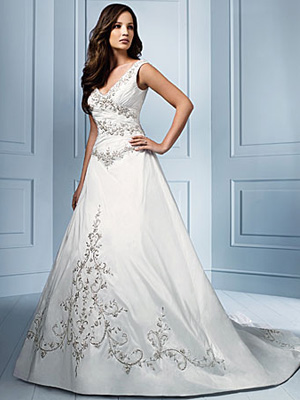 | Satin A-Line Embroidery Wedding Dress For Cute Woman |