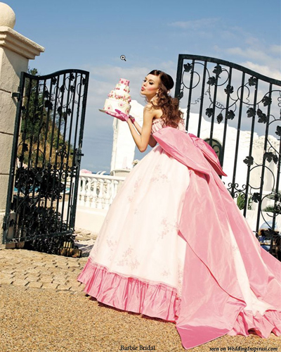 | Cute Light And Dark Pink Wedding Dress For Back Side With Large Bow |