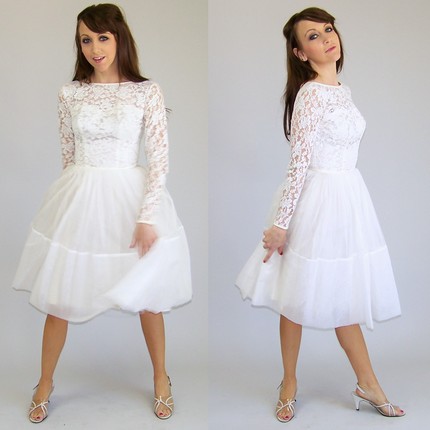 | Lace Long Sleeve Chiffon Wedding Sort Dress Front And Right Side View |