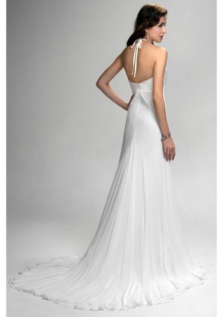 | Halter V Neck Chiffon Wedding Dress- |