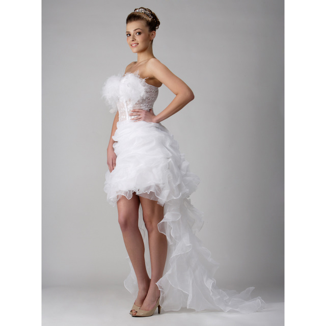 | 'Chiffon Wedding'-White High Low Chiffon Wedding Dress For Nice Girl |